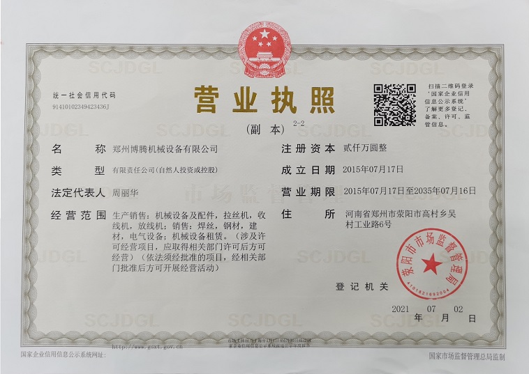 鄭州博騰機(jī)械設(shè)備有限公司是一家從事金屬制品拉拔設(shè)備、電控設(shè)備及其輔機(jī)的研發(fā)、設(shè)計(jì)及制造于一體的綜合型企業(yè),我公司擁有一批經(jīng)驗(yàn)豐富的專(zhuān)業(yè)技術(shù)人才和優(yōu)秀的生產(chǎn)管理人才,公司生產(chǎn)設(shè)備齊全,檢測(cè)手段完善。